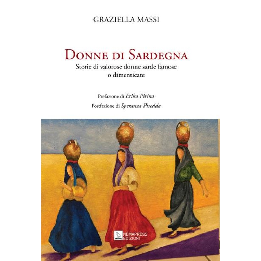 “Donne di Sardegna” di Graziella Massi come recita il sottotitolo, riunisce brevi biografie di “valorose donne sarde famose o dimenticate” con l’intento di raccontare il grande apporto culturale sociale politico economico offerto dalle donne in Sardegna. Il volume riempie un vuoto di informazione che se per i nomi femminili più noti come Grazia Deledda, Maria Carta, Eleonora d’Arborea, Maria Lai, è largamente ricolmato, tralascia decine di protagoniste il cui operato rischia di essere travolto dalla dimenticanza. Sono presenti oltre quaranta monografie cui si aggiungono tre capitoli collettivi per le donne della Prima guerra mondiale, le donne dimenticate della Resistenza e le donne bambine in miniera. Il volume gode della prefazione di Erika Pirina in quanto i testi sono il frutto di due anni di lavoro di Graziella Massi per il Corriere Sardo on line diretto dalla giornalista Pirina. La postfazione è a firma di Speranza Piredda presidente de La Rete delle Donne Alghero che per il suoi 10 anni dalla fondazione ha deciso di contribuire alla raccolta in volume di questi articoli di Graziella Massi, anche attiva socia della Rete delle Donne.